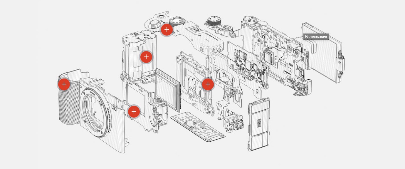 Камера α7C разработана компактной, легкой и портативной без ущерба для производительности — по своим характеристикам она не уступает полнокадровым камерам. Для этого мы создали новые механические компоненты, в частности компактный затвор и блок оптической стабилизации, а также улучшили компоновку и конструкцию.