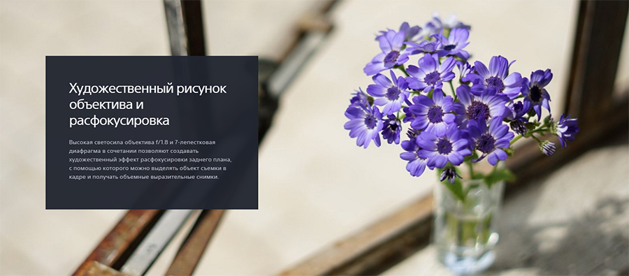Обеспечивает плавное боке и великолепную передачу объёма объектов