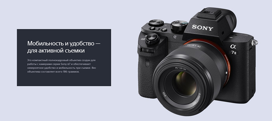 Это компактный полнокадровый объектив создан для работы с камерами серии Sony α7 и обеспечивает невероятное удобство и мобильность при съемке. Вес объектива составляет всего 186 граммов.