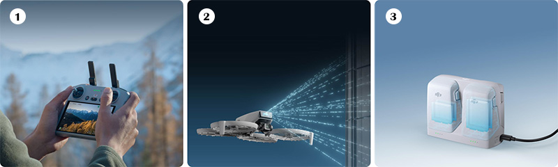 Три интеллектуальных аккумулятора: Не один, а целых три аккумулятора! Это порядка 1.5 часов общего времени полета, что полностью меняет опыт использования. Вам больше не нужно прерывать съемку из-за разряженной батареи.